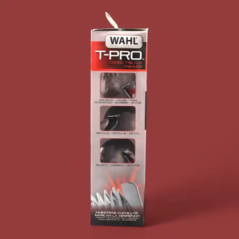 Consigue un acabado profesional en tus recortes con la patillera Wahl T-PRO 09307-308. Esta recortadora con cuchilla en T ofrece precisión y potencia en un diseño compacto y fácil de usar. Perfecta para delinear contornos, perfilar barbas y realizar retoques rápidos, la T-PRO te brinda la calidad que esperas de Wahl, la marca elegida por los profesionales.