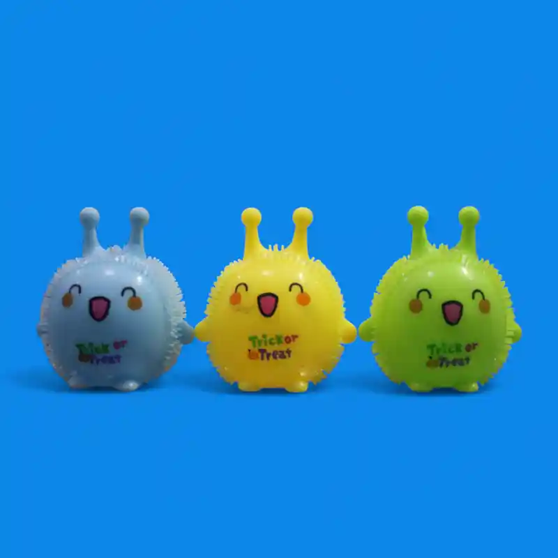 - Diseño adorable de monstruo: Con forma redonda, antenas y una simpática expresión, cada monstruo squishy tiene su propia personalidad. La imagen muestra al menos tres variantes de color: azul claro, amarillo y verde claro.