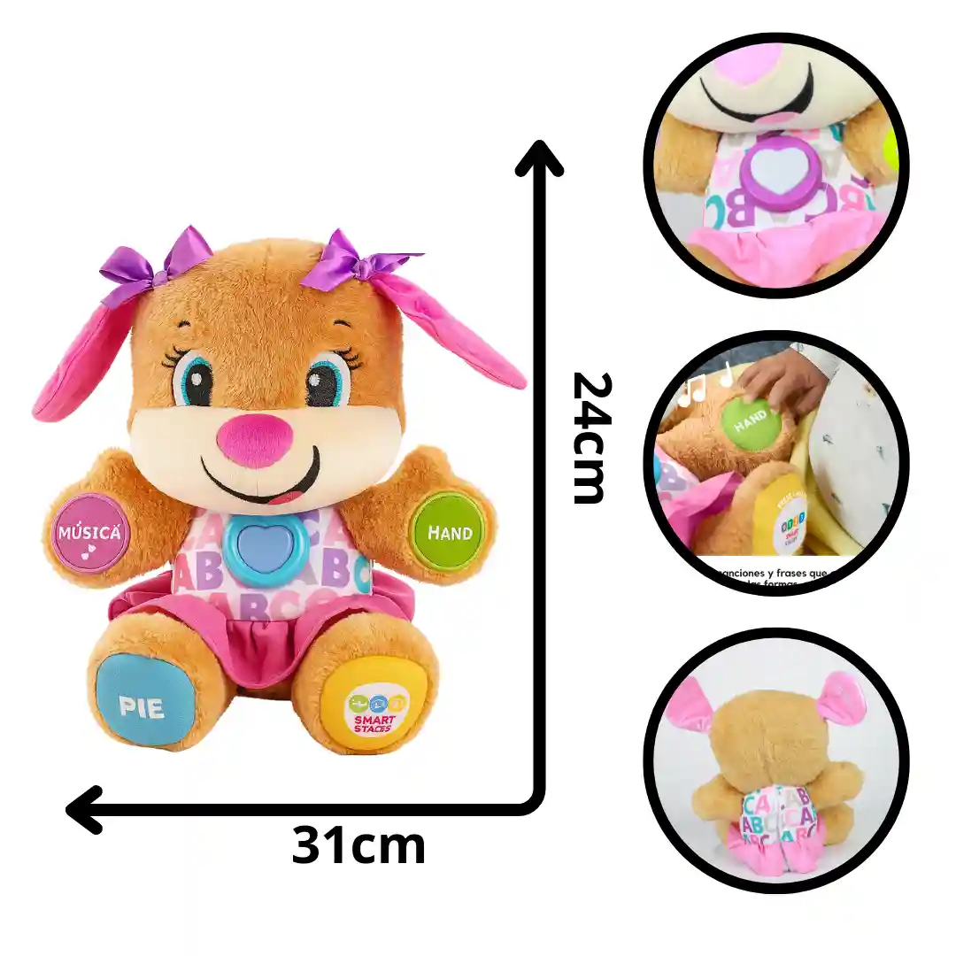 Peluche interactivo diseñado para niños, con funciones educativas y musicales que fomentan el aprendizaje y la diversión. Este perro de peluche incorpora botones táctiles que activan canciones, frases y sonidos, ideales para estimular el desarrollo sensorial y cognitivo en la primera infancia. Su diseño atractivo y colores vivos lo convierten en un producto llamativo para el público infantil.