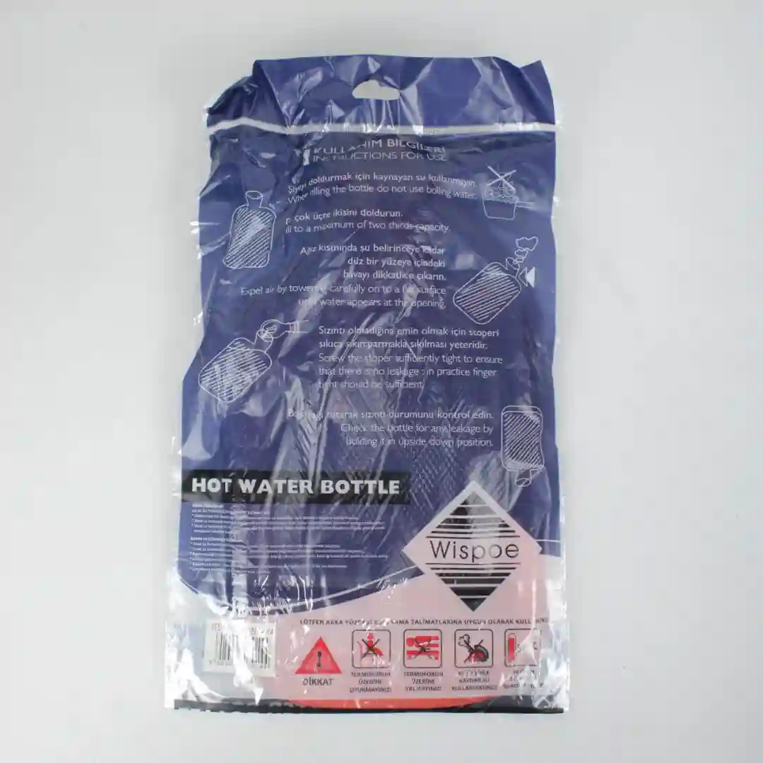 Bolsa de agua caliente diseñada para proporcionar alivio térmico y confort. Este producto cuenta con una funda protectora de textura suave que optimiza la distribución del calor y protege la piel durante su uso.
