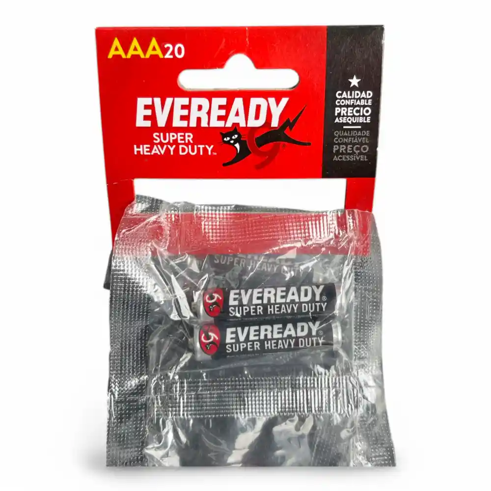 ¡Mantén tus dispositivos funcionando por más tiempo con las pilas Eveready Super Heavy Duty AAA! Este blíster contiene 20 unidades (10 pares) de pilas tamaño AAA, la opción ideal para dispositivos de bajo consumo como controles remotos, juguetes, linternas y mucho más.