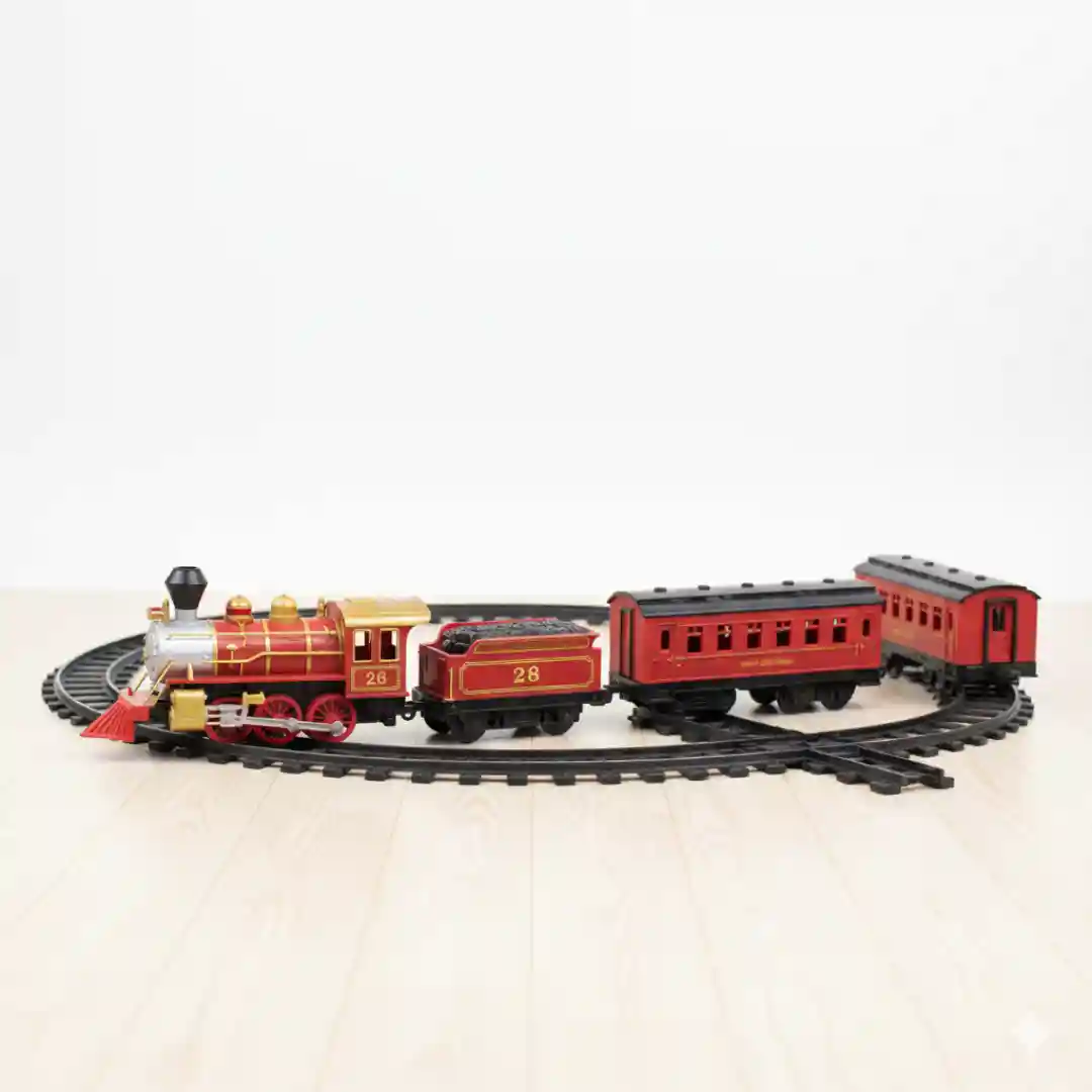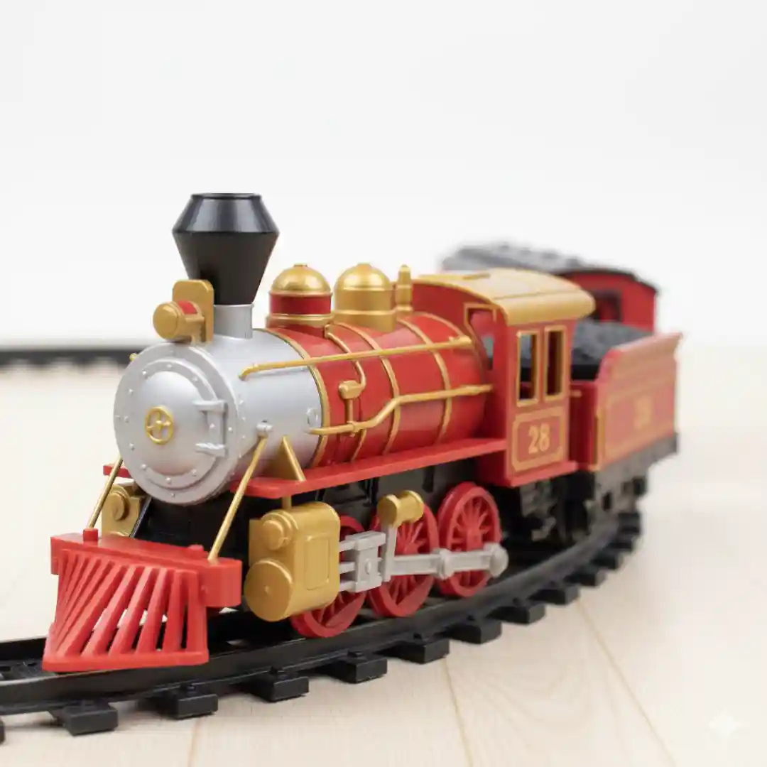 Nombre del Producto: Pista de Tren Clásico con Humo, Luz y Sonido