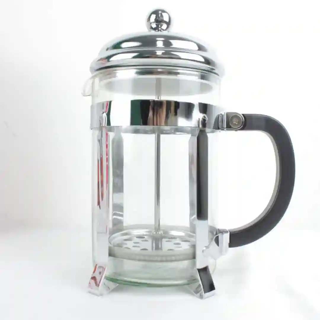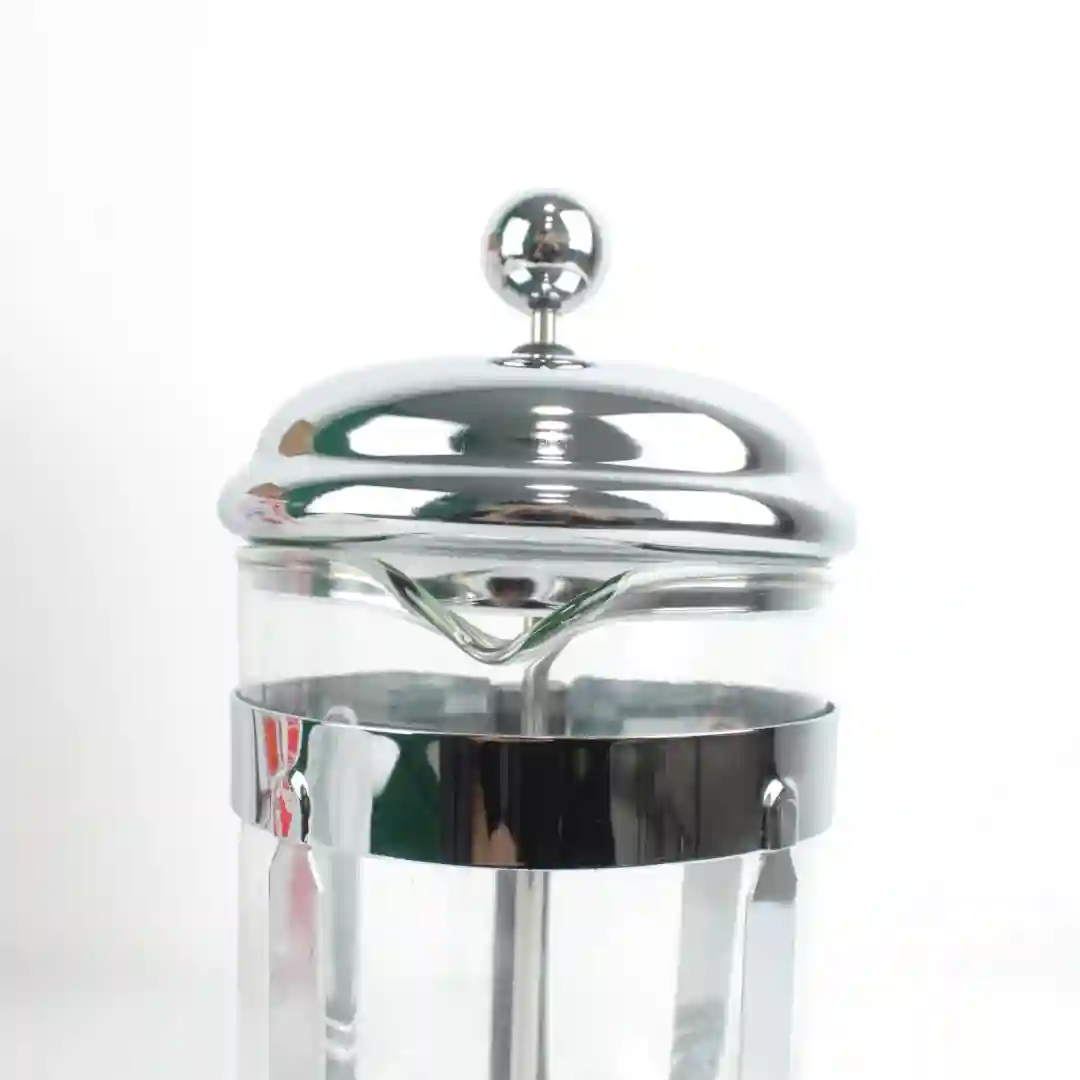 Sofisticada cafetera y tetera diseñada para resaltar la elegancia en su mesa mientras garantiza una preparación excepcional de sus bebidas calientes favoritas. Su estructura combina la transparencia del vidrio de alta calidad con acabados metálicos pulidos, ofreciendo un producto tanto funcional como decorativo.