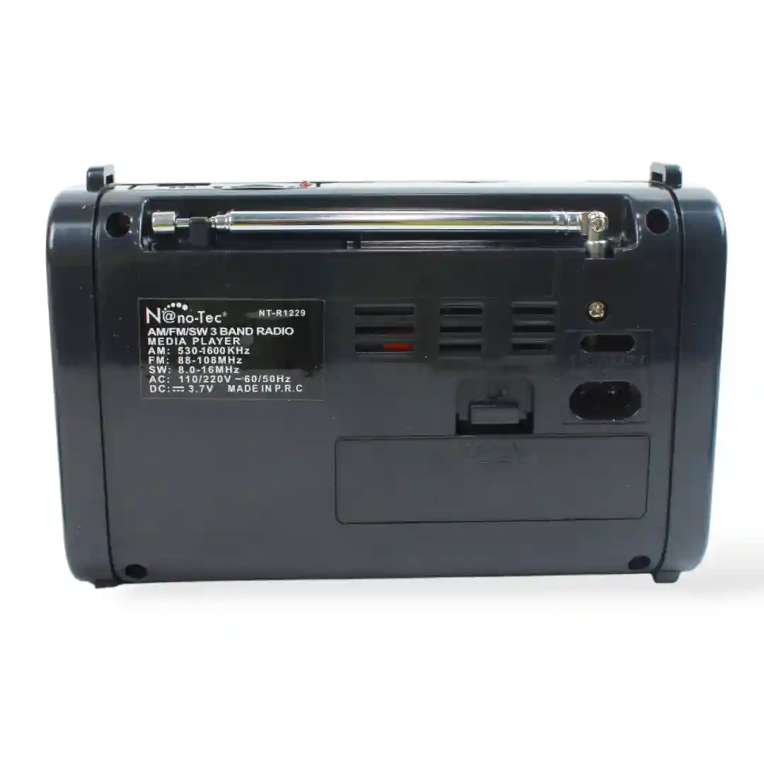 La Radio portátil N@no-Tec NT-R1229 es un producto versátil y completo, diseñado para satisfacer las necesidades de un mercado diverso. Con su capacidad de sintonizar tres bandas, diversas opciones de conectividad y funciones adicionales como linterna y operación recargable, esta radio representa una excelente oportunidad de negocio para revendedores que buscan un producto de alto valor y demanda.
