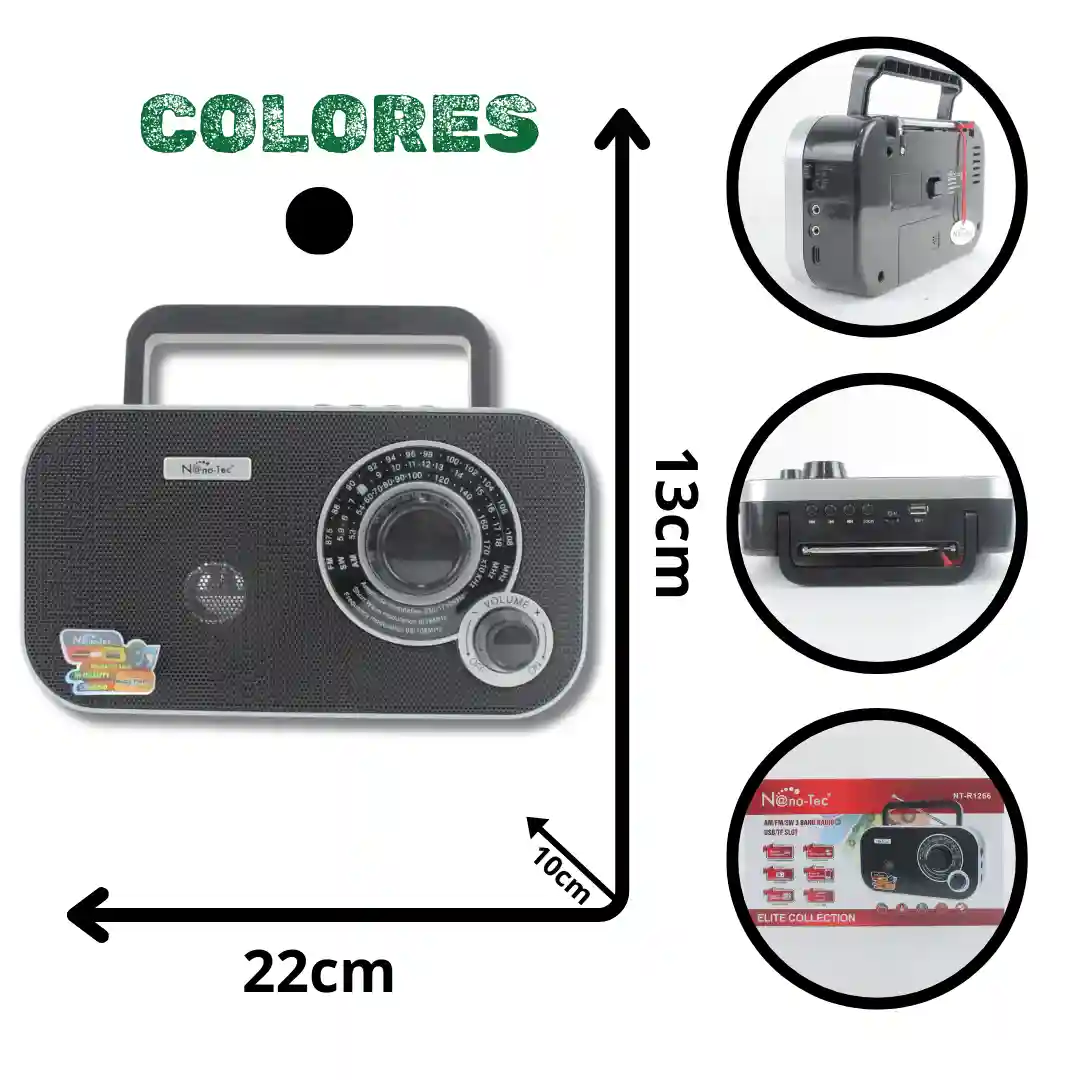 Este modelo NT-R1266 es un radio portátil de la serie Elite Collection, diseñado para ofrecer una experiencia multimedia completa con diseño compacto y batería recargable. Es un producto altamente competitivo, ideal para su comercialización en tiendas de electrónica, ferreterías y comercios minoristas de accesorios de audio.