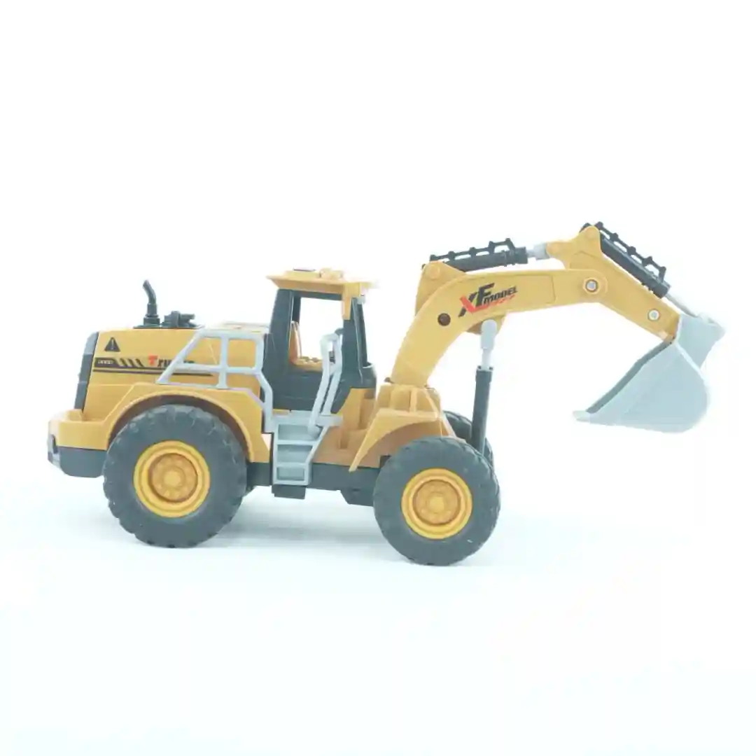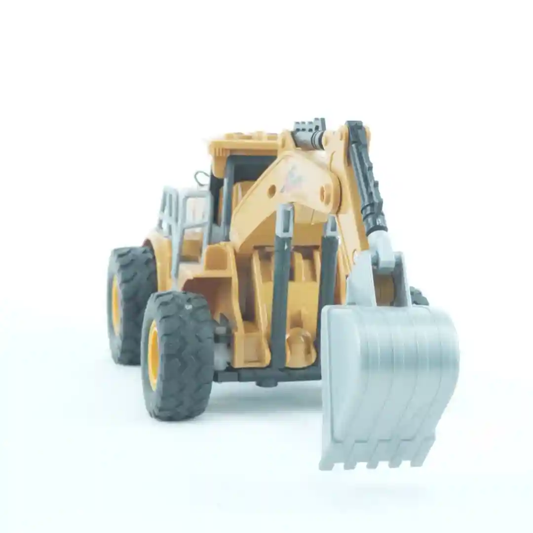 Funcionalidad Completa de Retroexcavadora: Cuenta con un brazo de excavación articulado y funcional en la parte trasera. Si observas las imágenes, verás que el diseño permite simular los movimientos de excavación y carga. Además, incorpora una pala frontal o cargadora que, en conjunto con la oruga, te permite interactuar con el terreno.