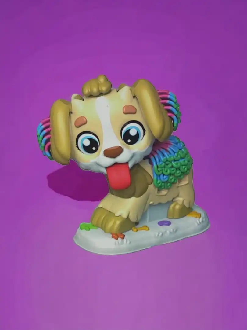 - Perro de juguete moldeable: El centro del juego es un perrito de juguete con partes moldeables, como la cabeza, las patas y la cola, para que puedas personalizarlo a tu gusto.