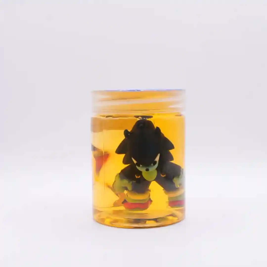 - Slime de Gel Translúcido Color Oro: El slime de un tono amarillo anaranjado brillante y translúcido es visualmente impactante, imitando el destello de los anillos dorados de Sonic. Su textura de gel es suave, elástica y ofrece una experiencia táctil muy satisfactoria.