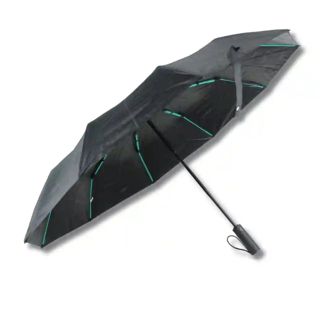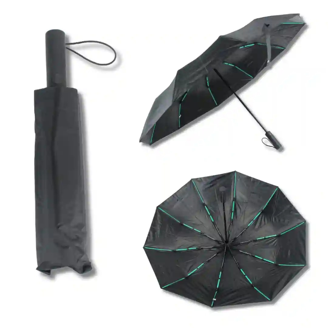 Sombrilla de alta resistencia con sistema de apertura y cierre automático, diseñada para brindar una cobertura superior y durabilidad ante condiciones climáticas exigentes. Su estructura reforzada y tela de alta densidad en color negro la convierten en un accesorio indispensable, elegante y funcional. Incluye una funda protectora a juego para facilitar su transporte y almacenamiento, manteniendo el producto en óptimas condiciones.