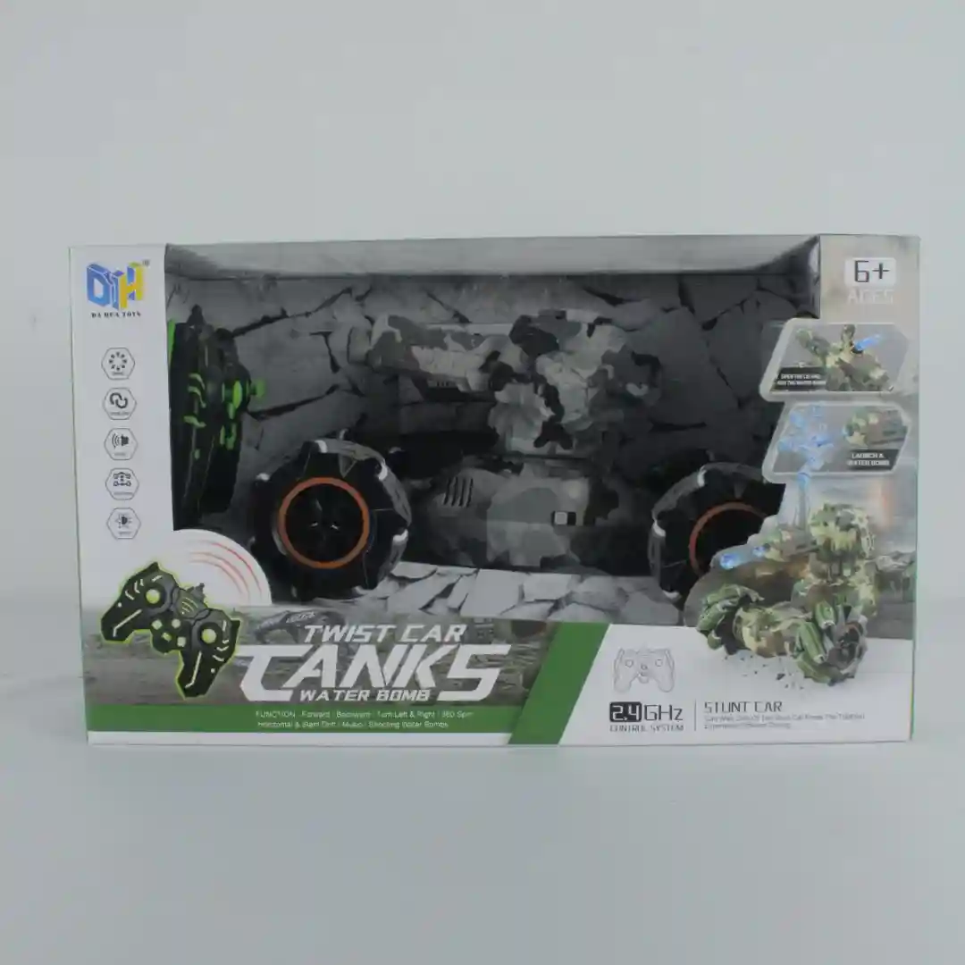 Este vehículo de control remoto combina la robustez de un tanque militar con la funcionalidad de un Stunt Car gracias a sus ruedas Mecanum o de rodillos, permitiendo movimientos laterales y giros de 360 grados. Además, integra la función de lanzamiento de proyectiles de agua (Water Bomb), ofreciendo una experiencia de juego altamente interactiva y atractiva para niños mayores de 6 años.