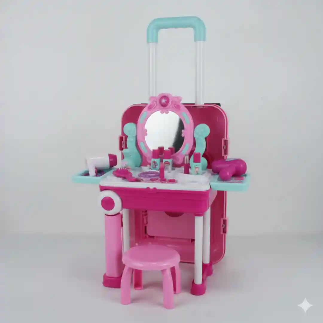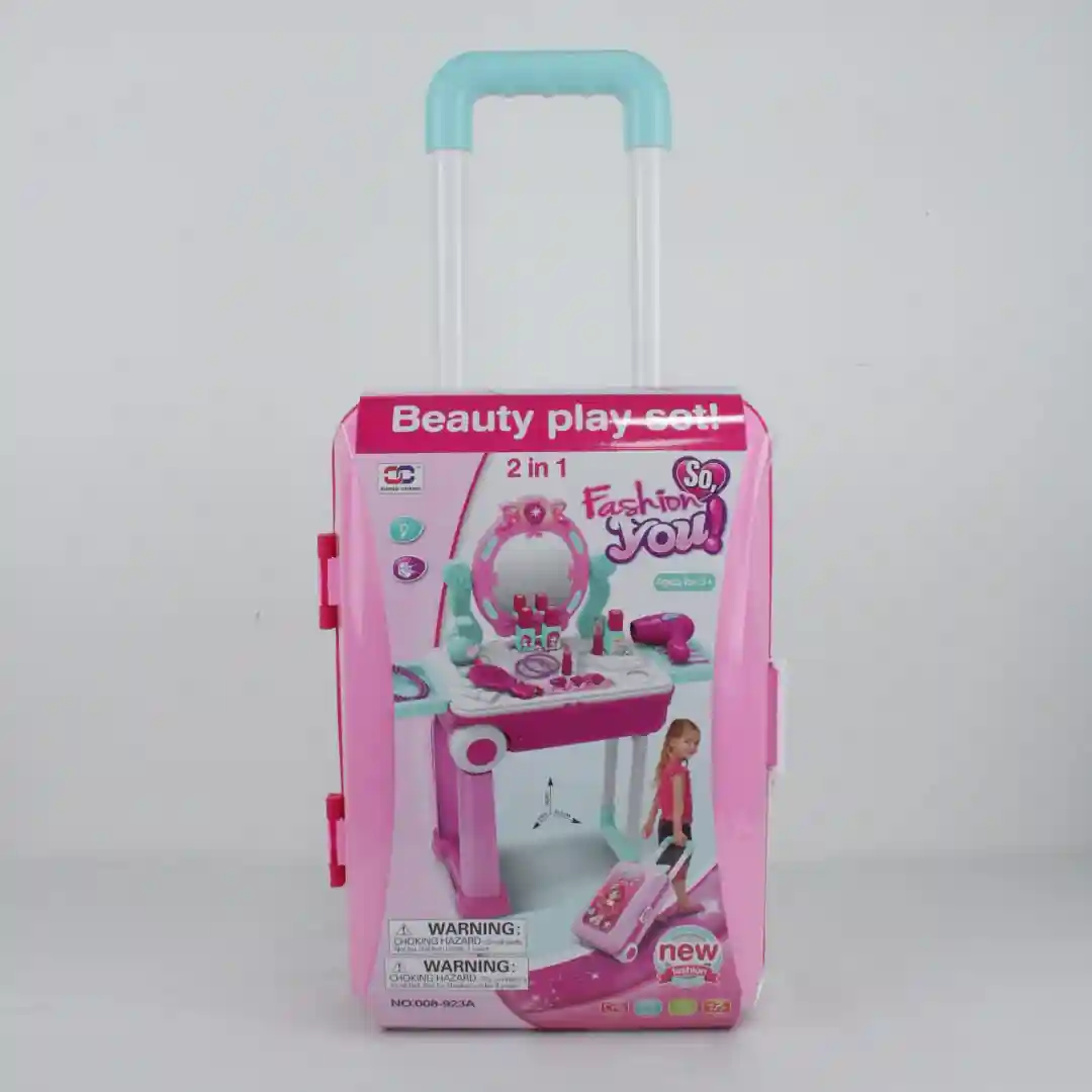 Ofrecemos el Set de Tocador Portátil «Beauty Play Set» (Referencia: NO.008-923A), un juguete de rol 2 en 1 que se transforma de una maleta de viaje con ruedas a un tocador completo. Este artículo es ideal para revendedores que buscan productos con alto valor de juego, fácil transporte y excelente rendimiento en el mercado minorista de juguetes y regalos.