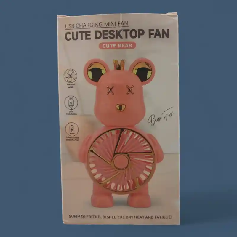 - Diseño Adorable: Con forma de oso y detalles cuidadosamente elaborados, este ventilador no solo te refrescará, sino que también añadirá un toque de ternura a tu día.
