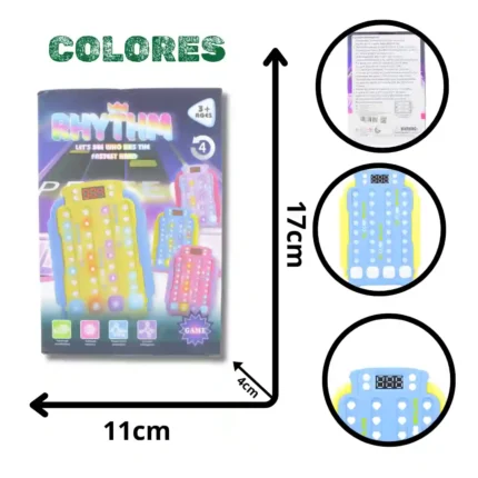 Tapete musical interactivo diseñado para el desarrollo motriz y sensorial de los niños. Este sistema de juego rítmico permite a los pequeños seguir secuencias de luces y sonidos, fomentando la coordinación mano-ojo y el ejercicio físico de una manera divertida. Su superficie es resistente y cuenta con un panel de control intuitivo para gestionar las diferentes funciones musicales. Características Luces LED integradas que indican el ritmo a seguir. Panel de control con altavoz de alta fidelidad. Superficie colorida con números e ilustraciones de dinosaurios. Modos de juego interactivos que desafían la agilidad del niño. Material fácil de limpiar y duradero. Funciona con baterías para mayor portabilidad. Diseño plegable para un almacenamiento sencillo.