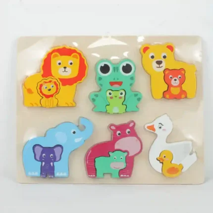 Rompecabezas educativo de madera diseñado para la estimulación temprana y el reconocimiento de formas. Este tablero interactivo presenta figuras de animales con colores llamativos y acabados suaves, facilitando el aprendizaje táctil y visual. Es una herramienta pedagógica ideal para desarrollar la coordinación mano-ojo y el pensamiento lógico en niños pequeños a través del juego de encaje. Características Fabricado en madera natural de alta durabilidad. Pintura no tóxica con acabados brillantes y seguros. Piezas de encaje con formas de animales (elefante). Diseño de bordes redondeados para un manejo seguro por parte de los niños. Estimula el desarrollo cognitivo y la motricidad fina. Base de madera resistente que sirve como guía para el armado.