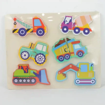 Rompecabezas educativo fabricado en madera con temática de maquinaria de construcción. Este juguete está diseñado para fomentar el reconocimiento de formas y el desarrollo de habilidades motrices finas en niños pequeños. Cuenta con piezas de colores vibrantes y un diseño de encaje sencillo sobre una base de madera natural, permitiendo una experiencia de aprendizaje táctil y visualmente estimulante. Características Material de madera natural duradero. Pintura no tóxica con colores brillantes. Piezas con bordes redondeados para mayor seguridad. Temática de vehículos de construcción (excavadora). Fácil encaje para manos pequeñas. Diseño que estimula la coordinación mano-ojo.
