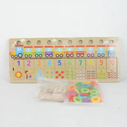 Rompecabezas pedagógico fabricado en madera de alta calidad con un diseño temático de tren. Este juguete educativo está diseñado para la estimulación temprana, permitiendo que los niños identifiquen formas y colores mientras desarrollan su destreza motriz. Las piezas cuentan con un acabado suave y colores vibrantes que captan la atención, facilitando el aprendizaje a través del juego de asociación y encaje. Características Material de madera natural resistente y duradero. Piezas de encaje con formas geométricas y elementos del tren. Pintura no tóxica con acabados brillantes. Diseño con bordes redondeados para un manejo seguro. Fomenta la coordinación mano-ojo y el pensamiento lógico. Base de madera estable que sirve como guía de armado.