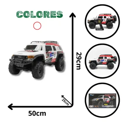 Tecnología de Control: Control remoto de 2.4GHz que permite el uso de múltiples vehículos simultáneamente sin interferencias y con un largo alcance.