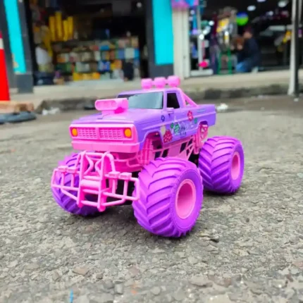 Vehículo todoterreno a escala con función de control remoto completo, diseñado con estética vibrante y llamativa, ideal para el público infantil y juvenil femenino. Ofrece una experiencia de juego dinámica y promueve la coordinación mano-ojo.
