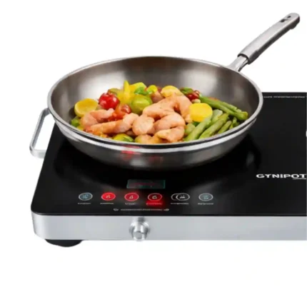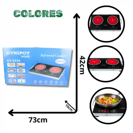 La estufa infrarroja GYNIPOT HOME modelo GY-0254 es una solución de cocción avanzada y versátil, diseñada para ofrecer eficiencia y potencia en la cocina moderna. Este equipo cuenta con una superficie de doble quemador y controles digitales intuitivos que permiten realizar múltiples técnicas culinarias con precisión. Su diseño elegante combina un acabado negro con detalles en plata, integrando asas laterales para una mejor manipulación y perillas frontales para ajustes rápidos.